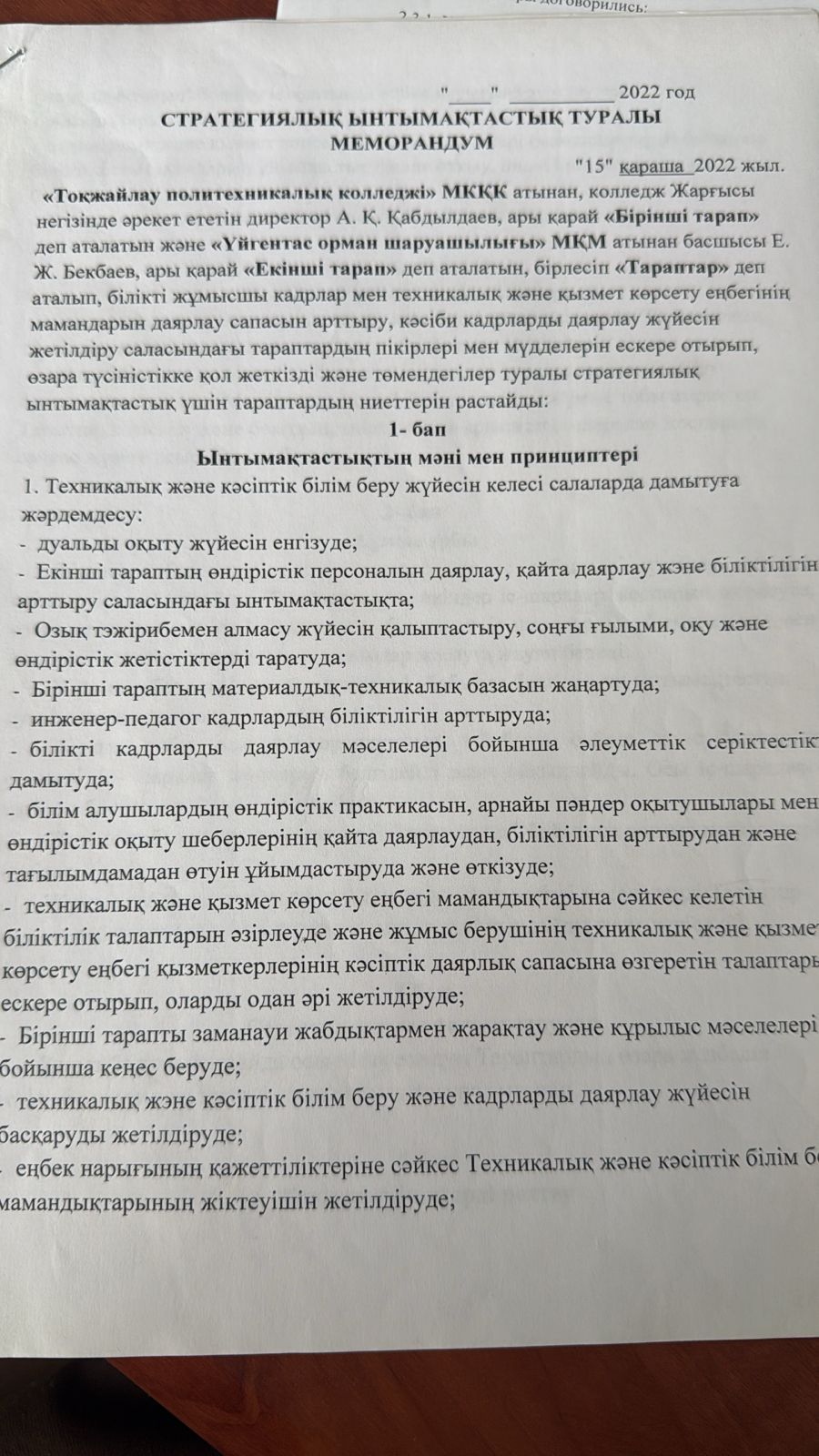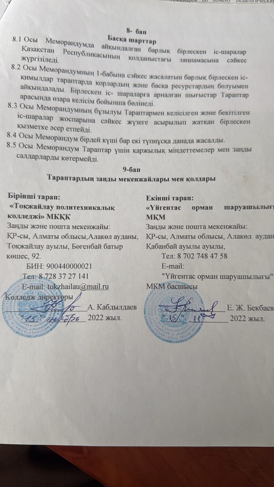 «Тоқжайлау көпсалалы колледжі» МКҚК